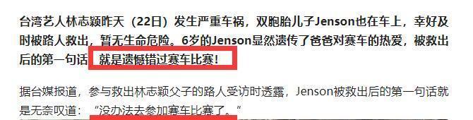 由此来看,林志颖这次带着和自己有着最大兴趣爱好的儿子,俩人一起去参加比赛出的事儿。林志颖对这个儿子格外上心,很多时候参加比赛,都会带着Jenson。