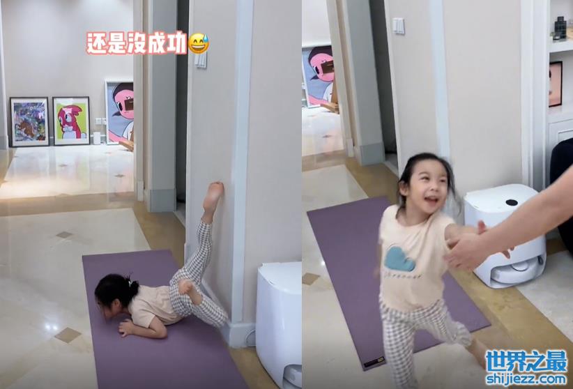 何姿的家中装修十分精致,靠墙摆着的三幅画格外抢镜。比豪宅更吸引人的是小盒子倒立的结果,不知道是不是力量不够,小盒子屡次失败,摔倒在地,把镜头后的爸爸秦凯心疼坏了。一直不成功的小盒子便让妈妈做示范,撒娇的样子十分可爱。