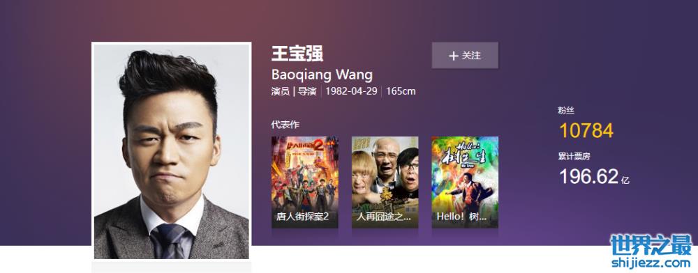 在电影上王宝强的成绩也是不俗,有口碑有票房真的是电影界的“香饽饽”。他主演的电影人在囧途系列,唐人街探案系列都是票房收割机 ,王宝强的累计票房达196.62亿,排名第7。