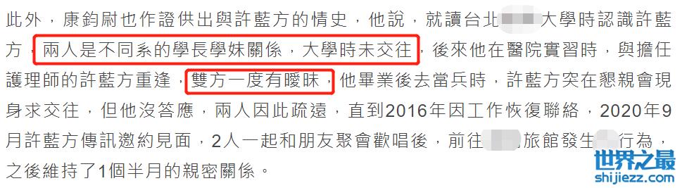 据悉,许蓝方与该名出轨人夫是不同系的学长学妹关系,相识于大学,不过当时两人并未交往,后来男方去实习,双方一度有过暧昧。但是当女方要求交往时,男方当时并未答应,两人因此疏远,直到2016年因工作才恢复联络,2020年9月许蓝方约男方见面,两人才第一次有了不正当关系,并且持续维持了一个半月,而当时男方已有妻子。