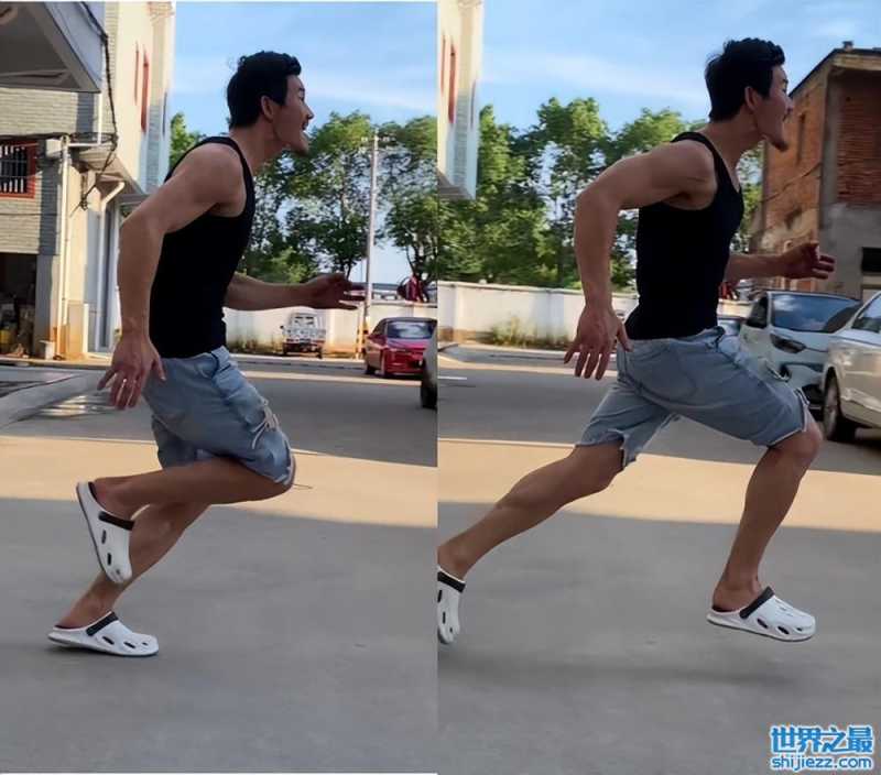 只见谢孟伟对面的豪车突然启动,谢孟伟二话没说就冲了出去,穿着拖鞋一路飞奔,,表情狰狞张大了嘴,跑步姿势像极了鸵鸟,看起来十分搞笑,不过幸好最终硬是赶上了这辆车。