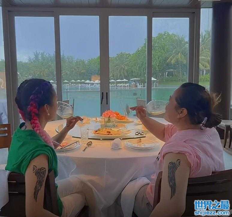 除此之外,贾玲还和好朋友一起体验了一把纹身的乐趣,两人在胳膊上一左一右用纹身贴纹上了大面积的图案,格外引人注目。
