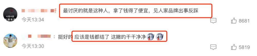 但网友并不买账,认为她“赚到钱了,就急着撇清关系”。