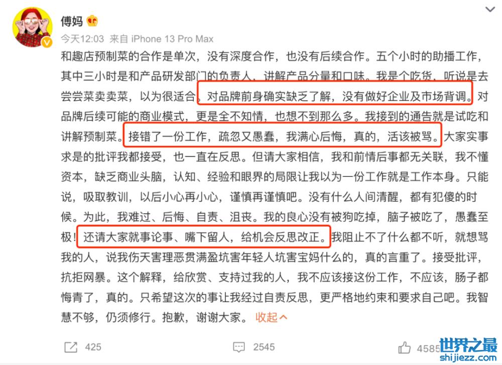3、傅首尔品牌风波,她立即致歉