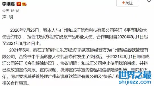 多天以后,李维嘉才发表声明,表示此事与自己无关。