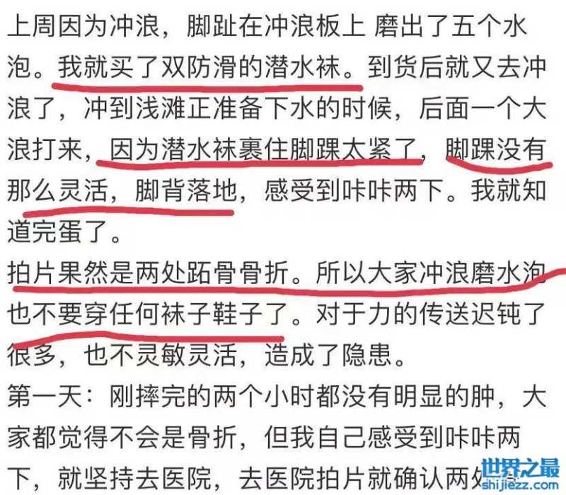近日,何穗在社交平台上发文,称自己在冲浪时,意外骨折了。当时,何穗穿着防滑的潜水袜,结果在冲浪的时候,因为潜水袜裹住脚踝太紧了,导致脚踝不灵活,最后脚背着地,拍片是两处跖骨骨折,何穗还建议大家如果冲浪,不要穿鞋袜了。
