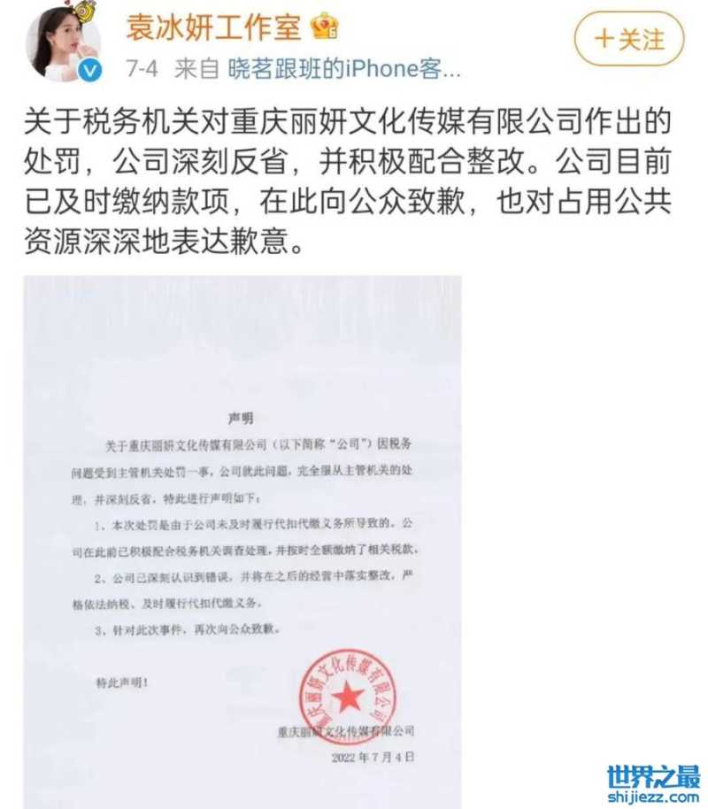 据悉,袁冰妍公司因偷逃税被罚97万元,虽然粉丝还在洗白,但是袁冰妍持股百分之百,怎么可能完全不知情呢。之后,袁冰妍工作室发布道歉声明。