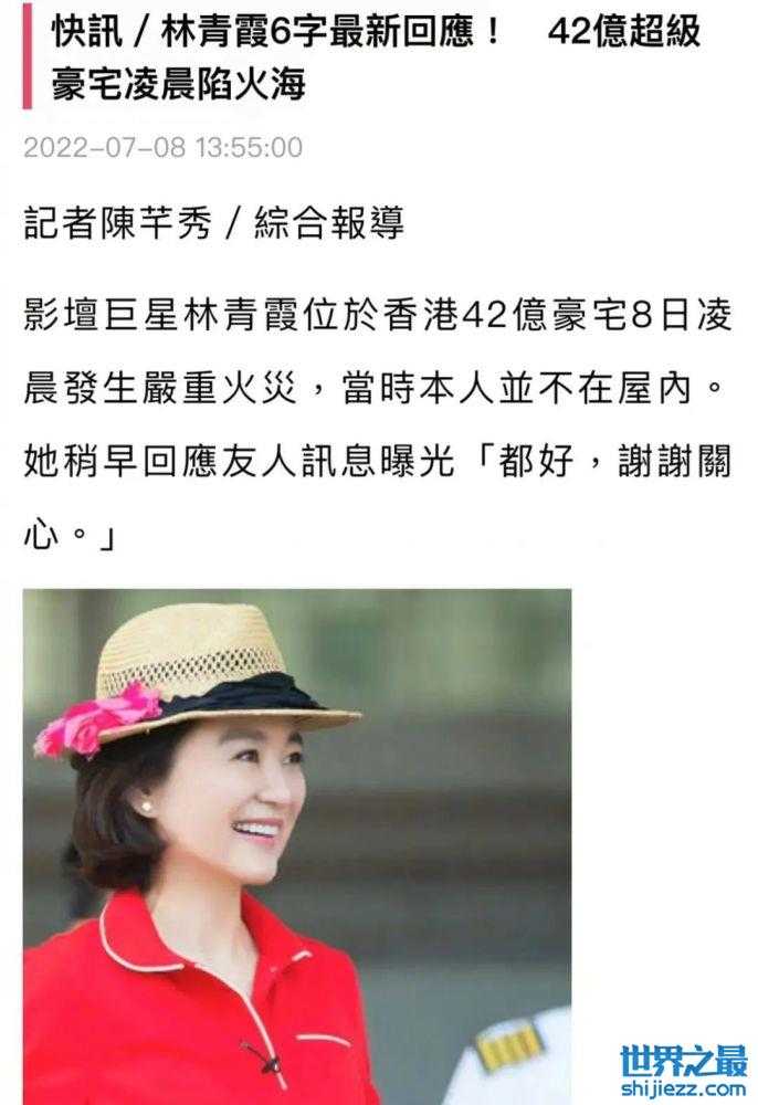 据悉,这栋起火的豪宅,是林青霞老公为庆祝结婚20周年,以1.3亿港元购入,送给林青霞的。后来,林青霞回应豪宅起火,“都好,谢谢关心”。虽然损失了一定的财富,但人没事才是最重要的。
