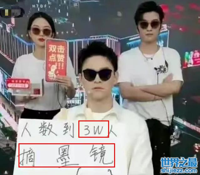 可某次直播时,他坐在镜头前戴着墨镜,演起了盲人,要粉丝数达到3万才愿意摘下墨镜。