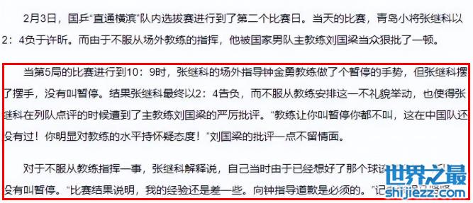 在比赛过程中,张继科还曾无视教练战术安排拒不下场,因此输掉了比赛。