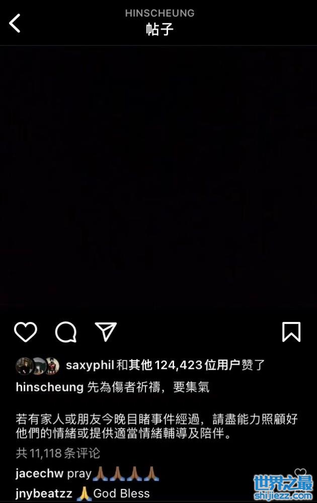 张敬轩为伤者祈祷,若有家人或朋友目睹事件经过,也请尽能力照顾好他们的情绪或提供适当情绪辅导及陪伴。