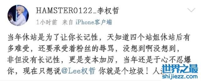 此前,因为李权哲的种种举动,其背后四个站姐都最终决意休站,还受到了不知实情的粉丝的谩骂,然而李权哲仍然不知悔改,甚至变本加厉。