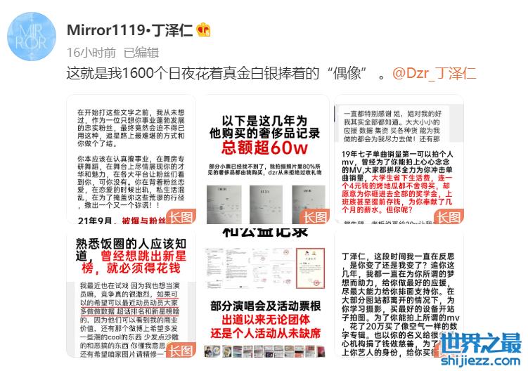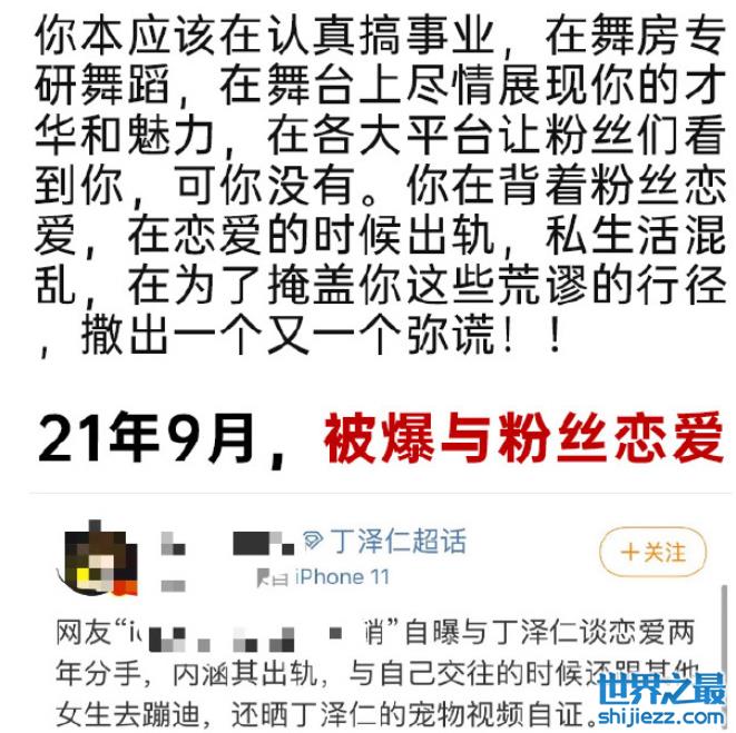 然而自己的付出却惨遭辜负,站姐声称丁泽仁在此期间不但事业心涣散,而且私生活混乱,背着粉丝谈恋爱不说,还明目张胆地公然出轨,另外还站姐还吐槽丁泽仁公司同事王一博、黄明昊、黄新淳等人的截图。 此外,站姐摆出一系列实证以作说明,一切都足以说明丁泽仁完全收割粉丝的韭菜大谈恋爱,而且私德有愧。