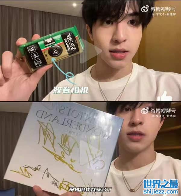 起因是《五十公里桃花坞2》里创4男团into1成员尹浩宇,送了辣目洋子胶卷相机+签名专辑当礼物,