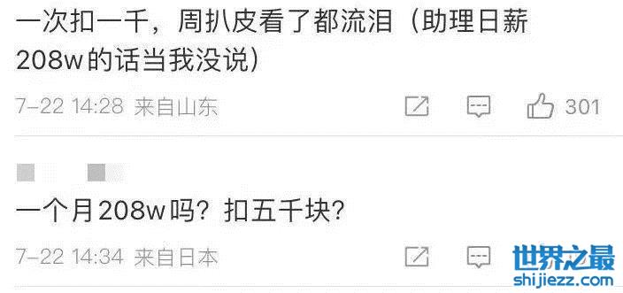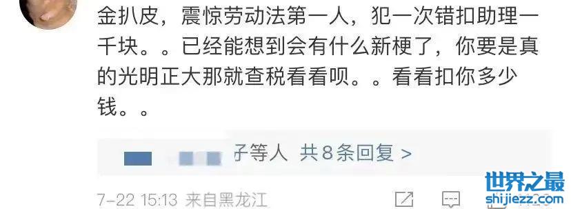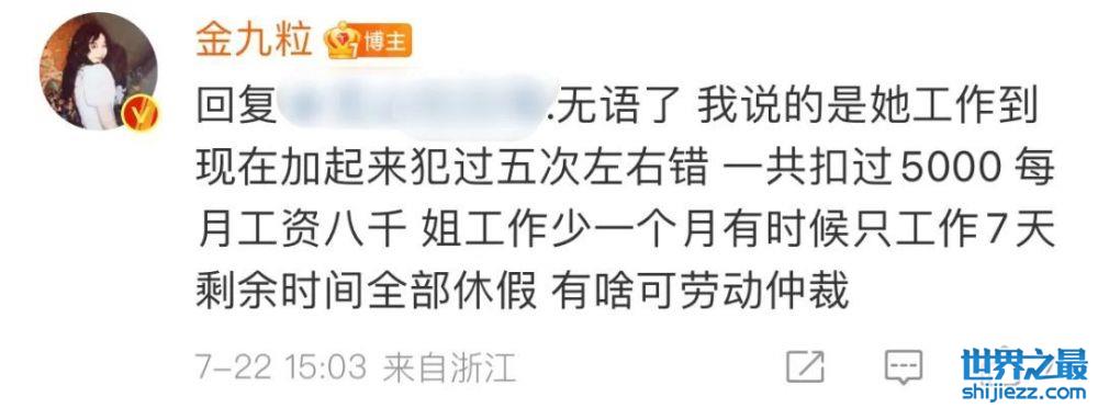 金靖又回复了,助理月薪八千,从工作到现在一共扣过五千,还说她工作量很少,一个月只工作七天。