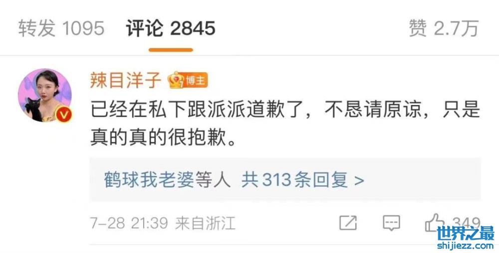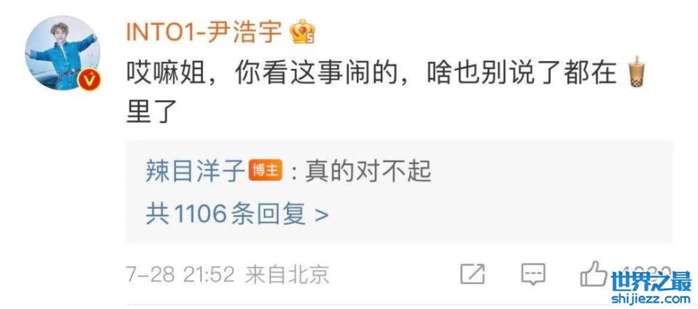 还在评论里表示已经跟派派尹浩宇道过歉了,