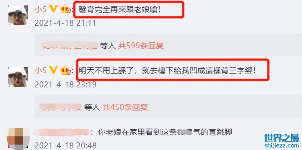 随后小S也十分不客气,直接在评论区回怼女儿,并表示叫女儿发育完全再来跟她呛。小S接连发了好几条评论,十分气急败坏。网友看着这母女间的“battle”也是感觉很是逗趣。