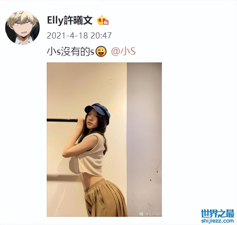 其实小S跟女儿们相处也都近似朋友,经常还跟女儿们在社交平台互呛对方,其中小S的大女儿许曦文就曾在自己的社交帐号上公开艾特小S跟她比美,并晒出了自己的S曲线身材,挑衅道:小S沒有的S。