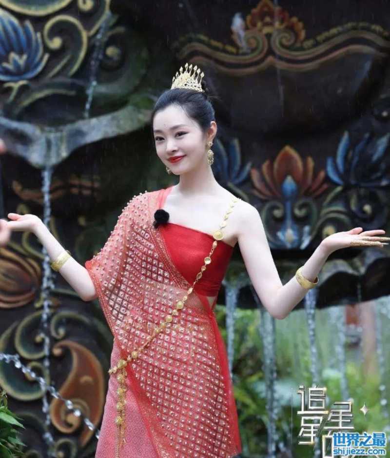 本身就是少数民族的王丽坤穿起傣族服饰来更是别具一番风味,与其他人的亮眼不同,王丽坤更显温柔,举手投足间都是优雅娴静。