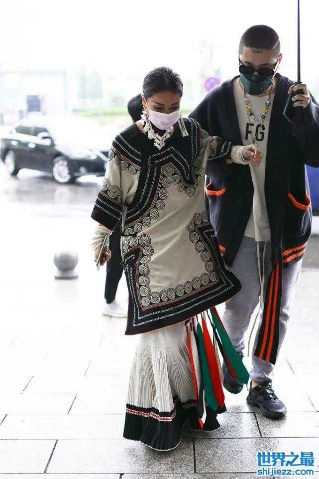 除了以上明星外,歌手吉克隽逸也还穿过彝族服装,走国际路线的她穿起本民族服装时,适配度自然不用说。民族色彩强烈的彝族服饰穿在她身上还带着一丝高级感。