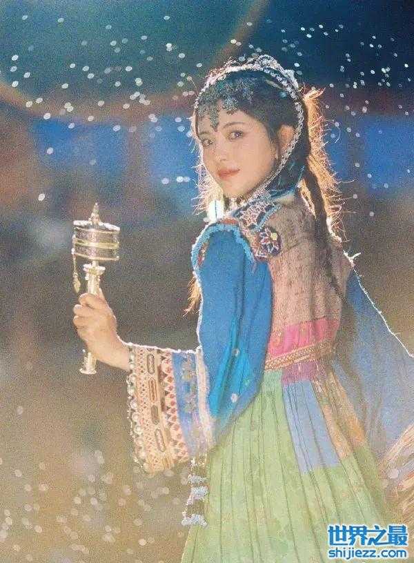 虽然杨颖演技一直备受吐槽,但颜值是真的毫无槽点,即使穿上比较难驾驭的藏族风服饰,那也是得心应手,异域感十足。再配上两朵高原红,宛如俏皮的藏族少女。