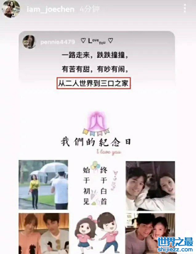 然而陈乔恩的一条限时动态引来不少猜测,动态中写着“一路走来,跌跌撞撞,有苦有甜,又吵又闹,从二人世界到三口之家,时光往复,爱你如初”。