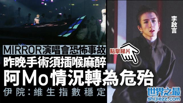7月28日,香港男团Mirror演唱会突然严重事故,悬空挂在舞台上的大屏幕突然掉落,直接砸向两名舞者李启言和张梓峯,后者受伤不严重,目前已出院,而李启言情况比较糟糕,脑出血及第四节颈椎骨折,在经过两次手术后,李启言的情况转为危殆,维生指数稳定,能否恢复活动能力还言之尚早,目前医院人员密切观察他的情况。