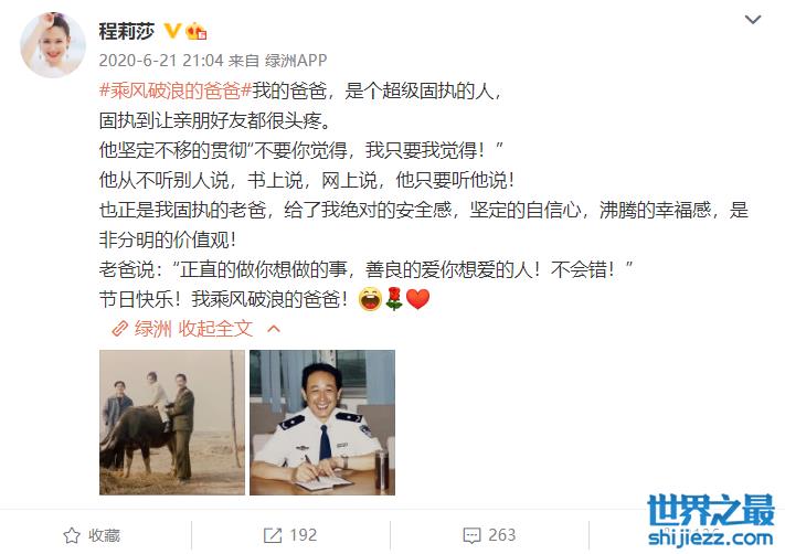 程莉莎曾在微博上多次表白父亲,说自己的父亲是个非常有自信心的人,也让自己有满满的幸福感,教会自己辨是非。