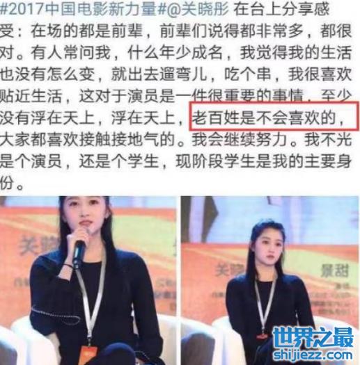 关晓彤从出道以来她的争议就不断,前有“植物肉”欺骗大众,后有奶茶店违约被告,而关晓彤本身也一直优越感十足,经常把“老百姓”这个词挂在嘴边,一般正常人都说观众,而关晓彤却高高在上地说群众为“老百姓”。