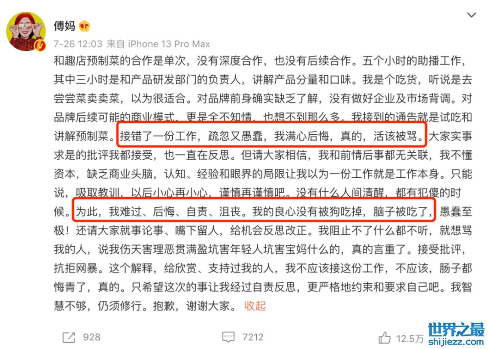但热评上的网友并不买账,并称傅首尔后悔是因为会影响到她以后接广告。