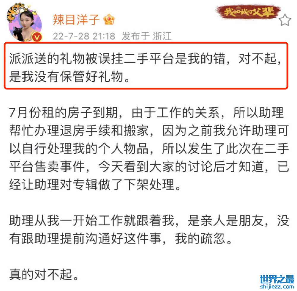 但网友发现,该礼物被辣目洋子挂在二手平台售卖,因此质疑她不珍惜朋友的礼物。