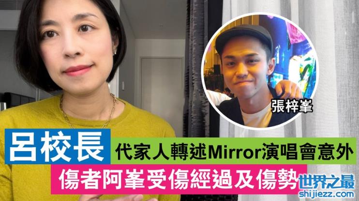 在8月2日晚, 吕校长代张梓峯家人转述,Mirror演唱会意外伤者阿峯受伤经过及伤势,张梓峯家人希望通过吕校长平台交代以下几点情况: