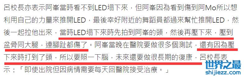 另外,吕校长表示当时阿峯看到大屏幕下来,因为看到伤到了李启言,所以想利用自己的力量来推开大屏幕,为李启言减轻压力,也因此受伤很严重。