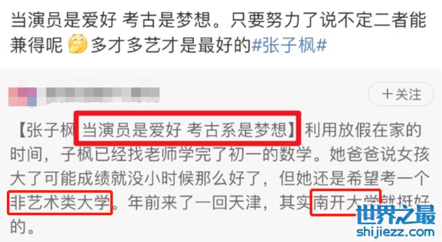 早在她还在读高中的时候,很多事就已经埋下了伏笔。那时候的她还很单纯,对于高中学习的难度完全没有概念。所以,她的爸爸理所当然地在记者面前讲述她当时的想法:当演员是爱好,考古才是梦想,希望考一个非艺术类的大学,南开大学就挺好。