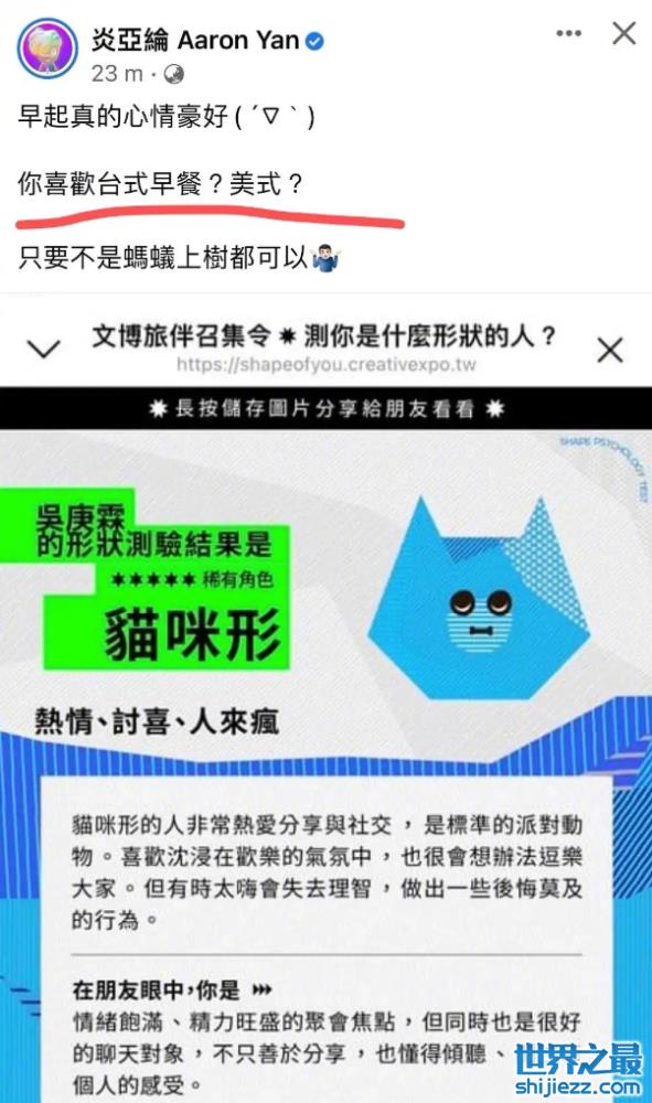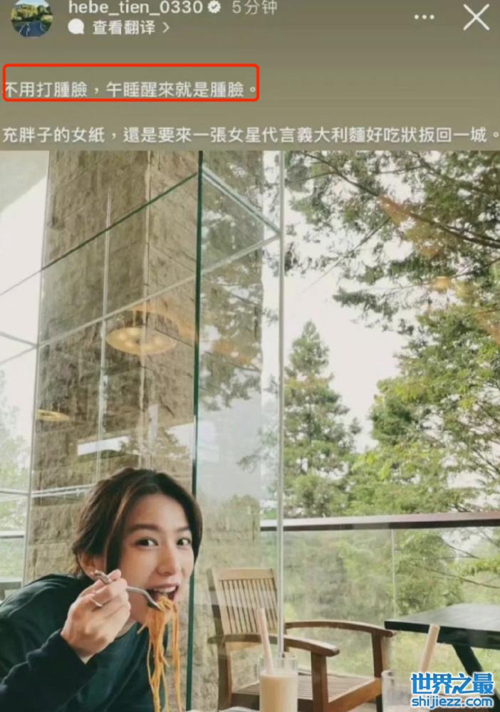还有以前在大陆发展,但现在回到台湾的艺人,有一些发声了,比如田馥甄。田馥甄深夜分享自己吃意大利面的照片,并配文“不用打肿脸,午睡起来就脸肿”。
