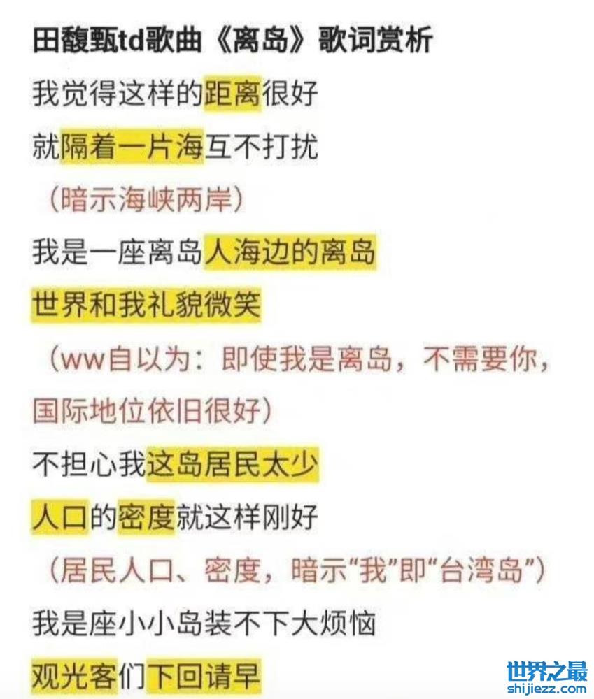 田馥甄歌曲《离岛》的歌词也被网友扒出,进行了一番解读。