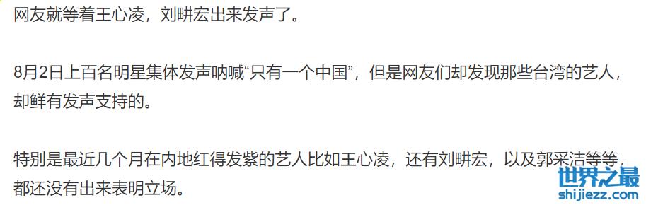 除此之外,有不少港台明星在此次事件中是保持沉默的态度,其中包括不少在内地发展甚至定居的台湾明星,比如刘畊宏,王心凌,杨丞琳,伊能静等一线明星。