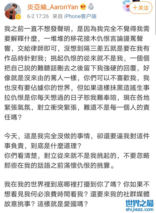 而且这也不是炎亚纶第一次因为言论惹争议,此前,有网友留言说让他离开中国,但没想到他回复对方说自己不在,当时也引发了很多争议,后来炎亚纶还专门就此回应过,表示自己不需要什么解释,还说是网友造谣生事,但就是没有解释自己为什么这样回复,甚至没有表明自己的立场,所以,这一次炎亚纶又该如何解释呢?