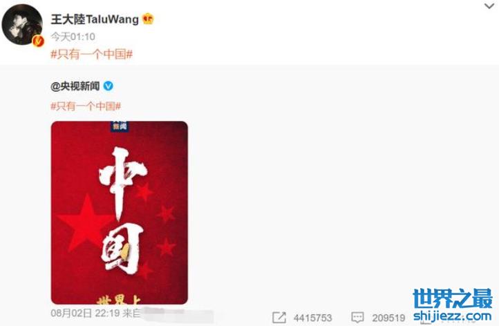 台湾演员王大陆也是凌晨及时转发,着重陈述了“只有一个中国”的坚定立场。