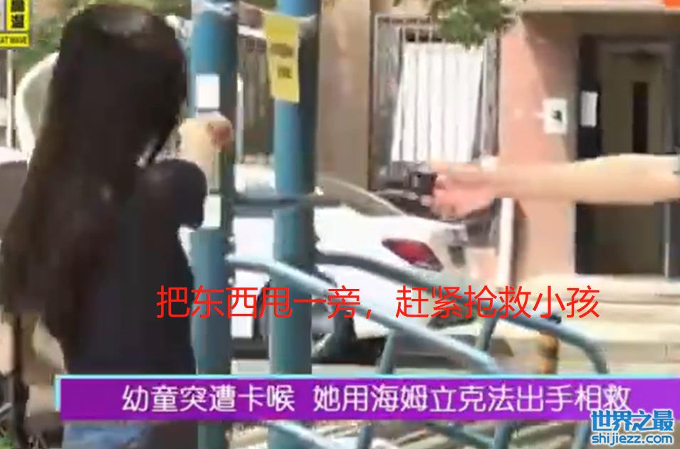 因为在网上见过【海姆立克法】的相关教程,苏妙玲见到已经被卡到脸部发紫的小朋友时,立刻开始模仿视频中的动作开始拎着小孩子“狂甩”“挤压”。