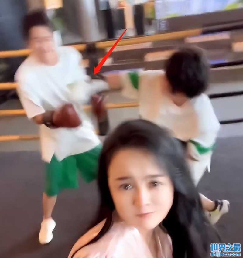 只见冉莹颖将镜头对准邹市明与轩轩的打斗场面,自己也对着镜头挥拳,模仿父子俩打拳的模样。邹市明身穿白色T恤和绿色短裤,轩轩则身穿白色运动套装,两人穿着都十分休闲,不像来打拳的。冉莹颖穿着也是很淑女,气质温婉。