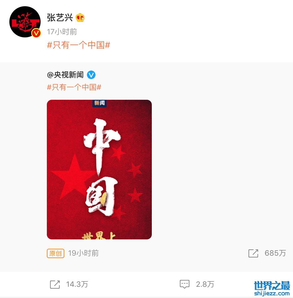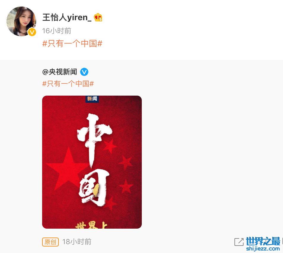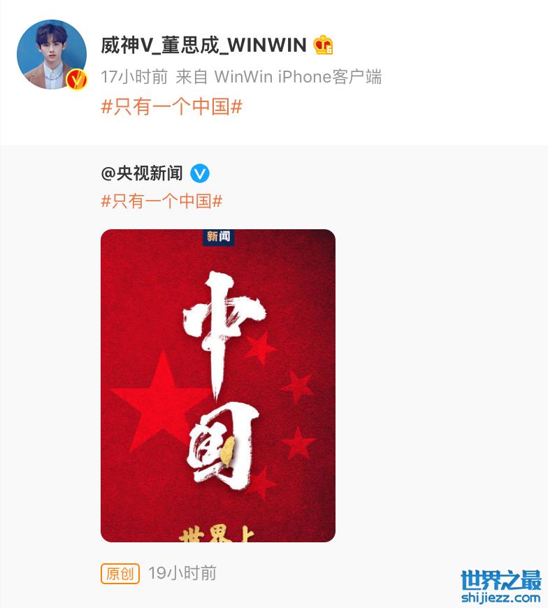 国内不少明星都转发了“只有一个中国”的微博,坚定表达自己的立场和爱国之心,其中也包括很多在海外拥有粉丝的爱豆。
