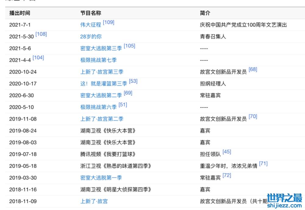 细数一下,某伦接的综艺量实在是大,作为一个演员,他从2018年开始,某伦先后接下了《上新了故宫》一二三季、《密室大逃脱》一二三季、《明星大侦探》、《我要打篮球》、《这!就是灌篮》、《极限挑战》六七季等数十档综艺,成了名副其实的“综艺咖”。