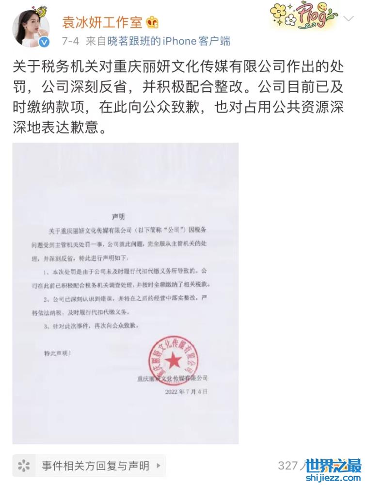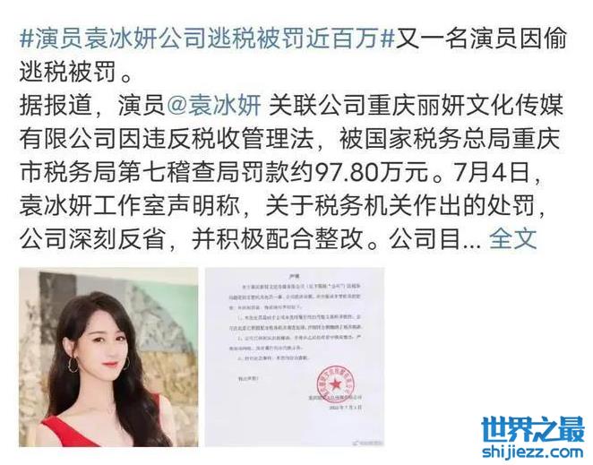 上个月,女明星袁冰妍也被爆出偷税漏税。
