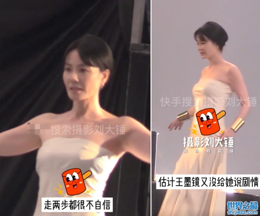 只见王菲正把双手张开,然后小心翼翼地来回走动,看起来非常不自信,脸上的表情也是十分紧张,可能是王家卫导演没有说剧情让王菲自由发挥了。不得不说,王菲穿的这个裙子完美显示出了她玲珑有致的身材,腰肢纤细,身材高挑,这个身材简直就像30岁一样。