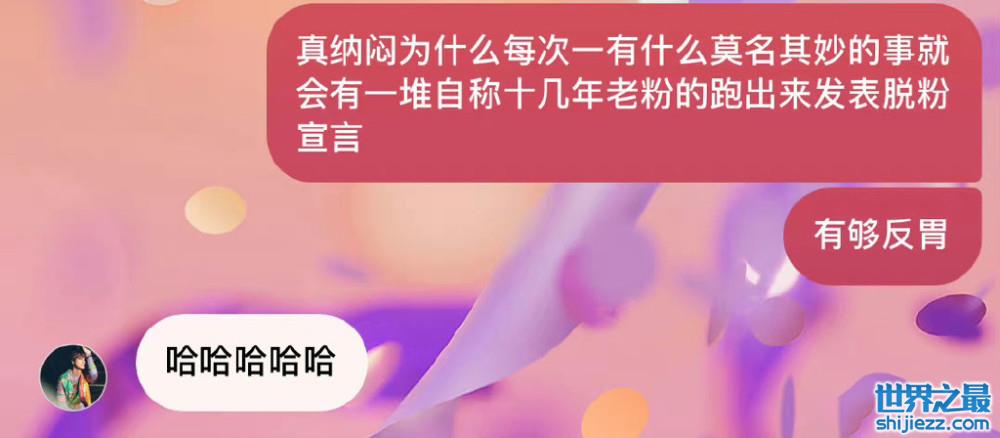 另外,粉丝说为什么每次有什么莫名其妙的事就会有一堆自称十几年老粉跑出来发表脱粉宣言,炎亚纶则回复了五个“哈”字,看来他也根本不在意粉丝脱粉,所以这或许也是粉丝挂出来的原因吧。