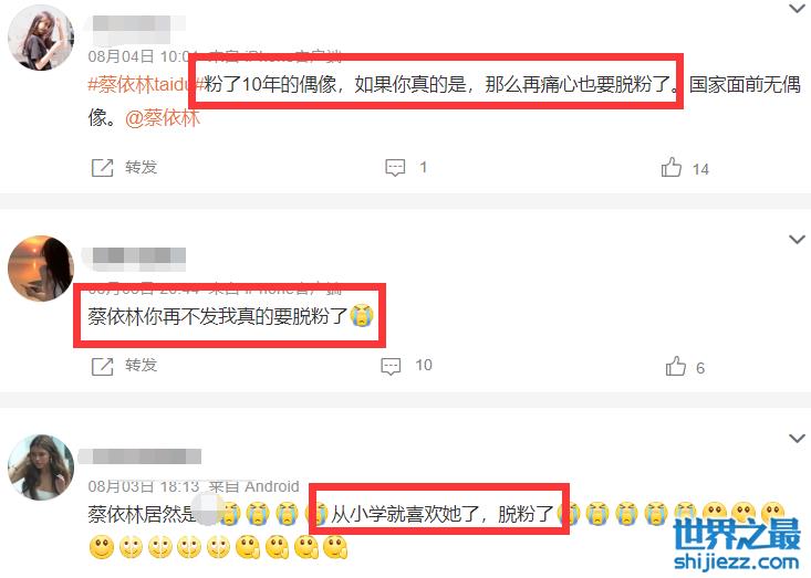 不过对此也有粉丝做出解释,这些通通都是蔡依林的早年言论,蔡依林此前也曾发表过不少爱国宣言,这些网络上也都留存下证据。