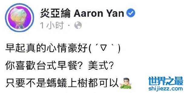 近日,台湾省艺人炎亚纶一跃成为热搜人物,继他发布的“台式美式早餐”动态引发热议之后,炎亚纶受到了不少网友的质疑,而他就自己的立场问题没有作出回应,也没有转发“只有一个中国”的动态。