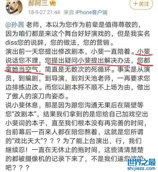 随后,关于孙茜耍大牌的相关词条,迅速冲上热搜。连工作人员也看不下去,发声为张小斐说话,表示孙茜把张小斐当空气,表面说是为剧本考虑,其实各种刁难张小斐。
