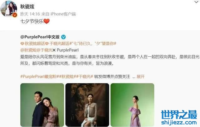 不知道是真的想分享幸福还是维护老公,今天秋瓷炫又甜蜜发文艾特于晓光。